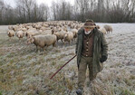 Die Landschaft an diesem Januarmorgen vor einem Jahr im Maintal bei Hochstadt a.M. ist dick bereift, die Bäume am Flussufer, das Schilf und die Wiesen sind ebenso weiß überzogen wie die Wolle auf dem Rücken der Schafe. Auch der Bart des Schäfers ist weiß, aber das liegt nicht an der Kälte, sondern am Alter.