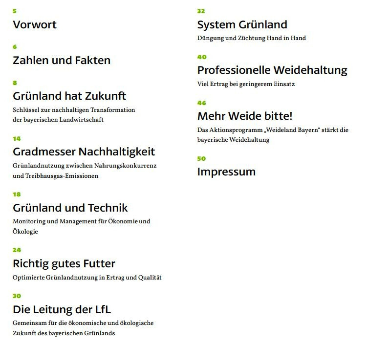 Das LfL-Magazin ist aus den früheren LfL-Jahresberichten erwachsen. Das illustrierte Magazin widmet sich jedes Jahr einem bestimmten Aspekt der bayerischen Landwirtschaft, mit dem sich die Experten der LfL bei ihrer Arbeit beschäftigen. In diesem Jahr ist es die Grünlandwirtschaft. Bereits die LfL-Jahrestagung hatte sich im vergangenen Herbst mit der Bewirtschaftung von Wiesen und Weiden befasst.