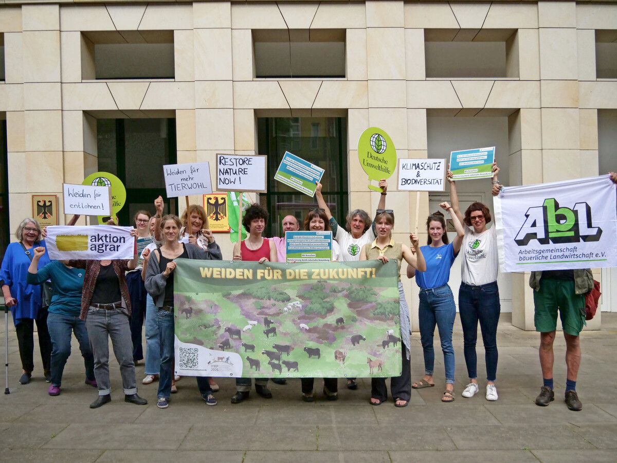 von Bündnis für Weidelandschaften und Hirtentum, Red. Quelle Bündnis für Weidelandschaften und Hirtentum erschienen am 02.07.2025Vor dem Umweltministerium traf Dr. Jochen Gebauer, Abteilungsleiter für Naturschutz, Nachhaltige Naturnutzung und Natürlicher Klimaschutz, als Vertreter des Ministeriums am 26. Juni 2025 die Bündnispartner aus Weidetierhaltung, Naturschutz und Landwirtschaft. Sabine Poth von der Liga für Hirtenvölker und Mitglied des Bündnisses für Weidelandschaften und Hirtentum betonte: „Weidetierhaltung ist nicht nur artgerechte Tierhaltung, sondern auch aktiver Naturschutz. Unsere Kulturlandschaften brauchen Hirten.“