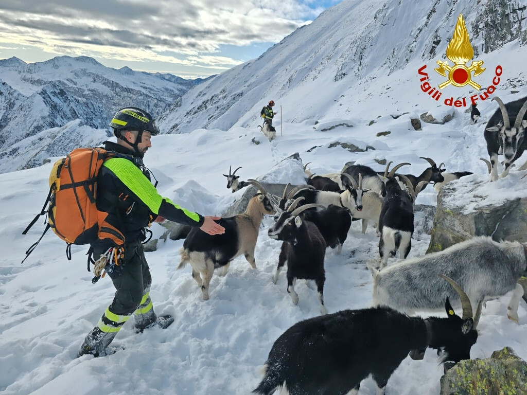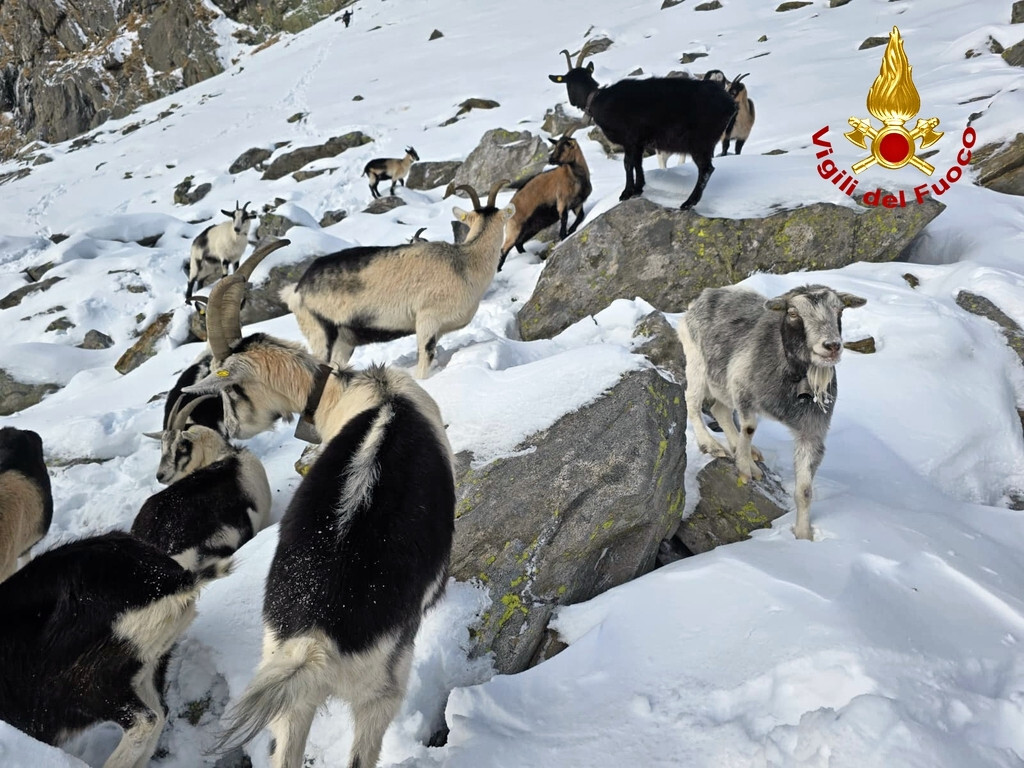 In der Provinz Sondrio der Region Lombardei, Norditalien, verirrte sich eine Ziegenherde in den Bergen und musste von der ansässigen Feuerwehr inklusive Helikoptereinsatz gerettet werden.