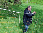Für die Demonstration der Wolfsnetze hatte Hubert Dissen ein sehr schwieriges Gelände ausgewählt: Eine hängige Wiese mit Bachlauf und schon jetzt hohem Bewuchs. Hubert Dissen nannte drei Faktoren, die aus Schäfersicht für einen praktikablen Herdenschutz entscheidend sind: Die Maßnahmen müssen machbar und in der Praxis durchführbar sein! Der zusätzliche Zeitaufwand muss in Grenzen bleiben! Die Kosten müssen so gering wie möglich sein, da die wirtschaftliche Situation in den schafhaltenden Betrieben keinen Spielraum mehr lässt.