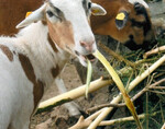 Karges Winterfutter - Gerade in der kargen Zeit besteht ein Großteil des Futters für meine Kamerunschafe aus Zweigen, Nadeln, Ästen und Blättern. Wie auf dem Foto zu sehen ist, verarbeiten die Tiere diese Nahrungsmittel mit viel Geschick und großer Sorgfalt.