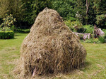 Für Schaf- und Ziegenhalter, die nur ein bisschen Heu mit der Hand machen, sind diese Heureuter eine einfache Möglichkeit, ihr Heu zu trocknen. Dieser Dreibockreuter besteht aus sechs Stangen, einem Draht, mit dem die Stangen oben zusammengehalten werden, und drei Metallringen. Die Anleitung zu diesem Modell stammt aus einem Schulbuch "Ackerbaulehre" aus den 1920er Jahren. Selbst mit schlechter Packtechnik funktioniert dieser Heureuter gut, und man kann ihn sehr schnell auf- und abbauen.