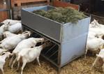 Die Heuraufe mit Diagonalfresszaun für Schafe oder Ziegen dient vorrangig zur ganztägigen Raufuttervorlage (Heu). Mit einem Nennvolumen von 2 m³ ist es möglich, 40 Ziegen zusätzlich zur Hauptfuttervorlage ein bis zwei Tage mit Heu zu versorgen. Dabei erleichtert der Einsatz von Hallenkränen oder ähnlichen Hubfahrzeugen den Arbeitsaufwand beim Befüllen der Raufen erheblich. Zur Reinigung der Raufe kann der Diagonalfresszaun mit wenigen Handgriffen entfernt werden.