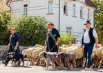 Am letzten Augustwochenende drehte sich in der hessischen Stadt Hungen alles um Schafe und Schäfer: Landesleistungshüten, Schäfermarkt, Schauhüten, Schäferabend, Schäfergottesdienst, Schäferlauf und Festzug. Stadtschäfer Ralf Meisezahl, sein Auszubildender Jürgen Endres (l.) und Schäfer Wilfried Lenz (r.) führen die Herde beim Festzug durch die Stadt. (Ein längerer Bericht über das Schäferfest und das Landesleistungshüten folgt im nächsten Schafzucht-Magazin.)