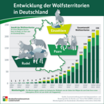 Die Entwicklung der Wolfsterritorien in Deutschland zeigt, dass die Wolfsbestände weiterwachsen. Dabei sind die Wolfsterritorien regional sehr unterschiedlich verteilt.