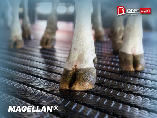 Neben Hitzestress ist auch die Klauengesundheit entscheidend für das Wohl der Tiere. Der MAGELLAN® Laufgangbelag als integraler Bestandteil des Dairy Success Konzepts sorgt mit einem speziellen Rillen- und Drainagesystem für trockene, rutschfeste Böden und fördert die Bewegungsfreiheit der Tiere. Die saubere Oberfläche beugt Klauen-problemen vor, und die Luftzirkulation unter der Klaue reduziert das Risiko von Krankheiten wie Mortellaro. Studien wie das GénoSanté-Projekt zeigen eine deutliche Reduktion von Klauenläsionen und die Ammoniak-Emissionen werden um bis zu 40 % gesenkt.