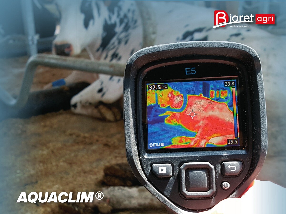 Die Tage mit Hitzestresspotenzial im Sommer nehmen spürbar zu (Quelle: Deutscher Wetterdienst), was die Gesundheit der Milchkühe stark beeinträchtigt. Hier setzt die AQUACLIM®-Serie von Bioret Agri an: Die aktiv klimatisierbare Wasserbettmatratze mit integriertem Kühlsystem ermöglicht nicht nur eine grundsätzlich um bis zu 10°C kühlere Oberfläche. Sie transportiert überschüssige Wärme während des Liegens auch aktiv ab -mit bis zu 350 Wh pro Kuh. Das entspricht unter Berücksichtigung der Wärmeabgabe an die Luft der Wärmeableitung einer stehenden Kuh. Jedoch können die Tiere mit Aquaclim entspannt liegen bleiben, wiederkäuen und Milch produzieren. Eine unabhängige Studie (Bovi’Clim, 2021) belegt: Kühe auf Aquaclim verbrachten täglich 90 Minuten mehr liegend und steigerten die Futteraufnahme deutlich.