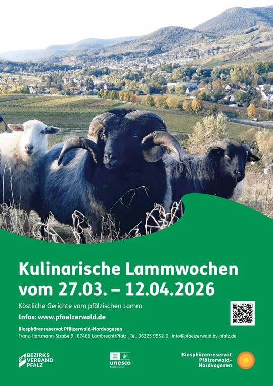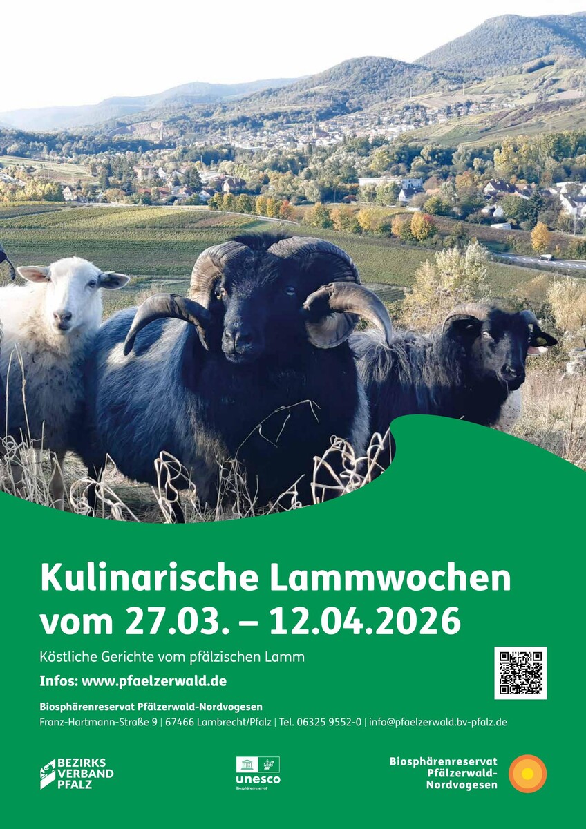 von Biosphärenreservat Pfälzerwald-Nordvogesen / Red. erschienen am 05.03.2026Vom 27. März bis 12. April 2026 bieten sechs ausgewählte Restaurants aus dem Partnernetzwerk Lammgerichte in verschiedenen Variationen an. Mit dabei sind: