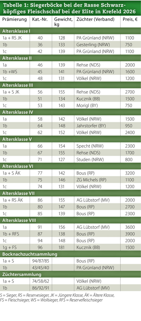 Vom 18. bis 19. März 2026 findet in Krefeld, Nordrhein-Westfalen, die 32. Schwarzkopf- und 30. Suffolk-Elite 2026 statt. Die Schafzüchtervereinigung NRW richtet die Bundeselite aus.